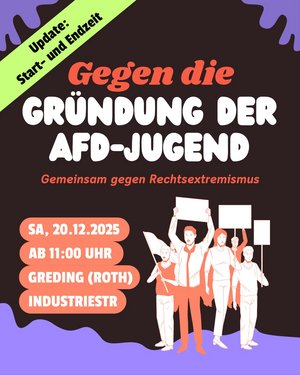 Am Samstag, den 20. Dezember 2025, wird in Greding ein dunkles Kapitel aufgeschlagen: Die AfD plant dort die Gründung ihres bayerischen Jugendverbands. Ein Verband, der mit hoher Wahrscheinlichkeit rechtsextreme Ideologien verbreiten wird – und damit gezielt junge Menschen für Hass, Ausgrenzung und Demokratiefeindlichkeit instrumentalisieren will.