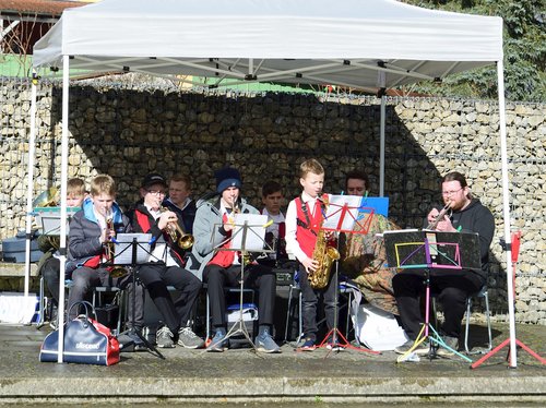 Für die musikalische Umrahmung sorgten die Stadtkapelle Hilpoltstein und die Jugendkapelle Thalmässing Sound. Über zwei Stunden begeisterten sie mit einem bunten Mix aus ihrem Repertoire das Publikum. Die Stadtkapelle präsentierte unter anderem die Märsche „Gruß an Böhmen“ und „Salve Imperator“ sowie den Walzer „Nur wer die Heimat liebt“. Nicht ganz erfüllen konnten die Musiker allerdings die Erwartungen, die Hilpoltsteins Bürgermeister Markus Mahl bei der Begrüßung in sie gesteckt hatte: „Unsere Stadtkapelle hat bei ihrem letzten Auftritt gezeigt, dass sie mit ihrer Darbietung auch Regenwolken vertreiben kann,“ versprach Mahl. Tatsächlich gingen am Nachmittag dann doch zwei kurze Schauer nieder. Der guten Stimmung der Gäste und Veranstalter konnten sie jedoch nichts anhaben.