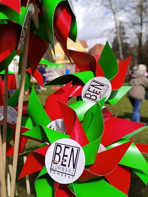 Zu einem Frühlingsfest auf der Försterwiese in Hilpoltstein hatten die Kreisverbände von SPD und Grünen am Samstag, 25. März eingeladen. Viele Familien nutzten die Gelegenheit für einen Besuch. Denn gerade für kleinere Kinder waren einige Aktionen geboten: Sie konnten auf der Wiese Ostereier suchen, Hasen aus Holz für die Osterdeko basteln oder aus Erde und Saatgut Kugeln formen, um daraus im Garten bunte Frühlingsblumen zu ziehen. Die Erwachsenen hatten derweil Zeit, mit dem Landratskandidaten Ben Schwarz ins Gespräch zu kommen. Bei Ben-Brause, Schwarz-Tee oder einem Schwarz-Brot konnten sie ihn persönlich kennen lernen und mit ihm über Themen im Landkreis Roth diskutieren.