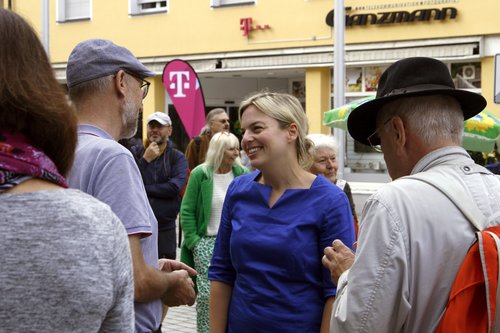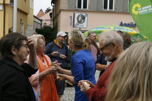 "Auf ein Eis mit Katha" - unter diesem Motto hatten wir Bürgerinnen und Bürger eingeladen, mit der Spitzenkandidatin von Bündnis 90 / Die Grünen für den Bayerischen Landtag ins Gespräch zu kommen. Und diese Chance nutzten auch viele und tauschten sich mit Katharina Schulze am Rother Wochenmarkt aus.