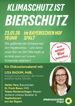 Wie wirkt sich der Klimawandel auf den Hopfenanbau vor Ort aus? Und was bedeutet das für unser regionales Bier? Dieser Frage gehen die Spalter Grünen am 23.01.2026 bei einer Diskussionsrunde im Bayerischen Hof nach.