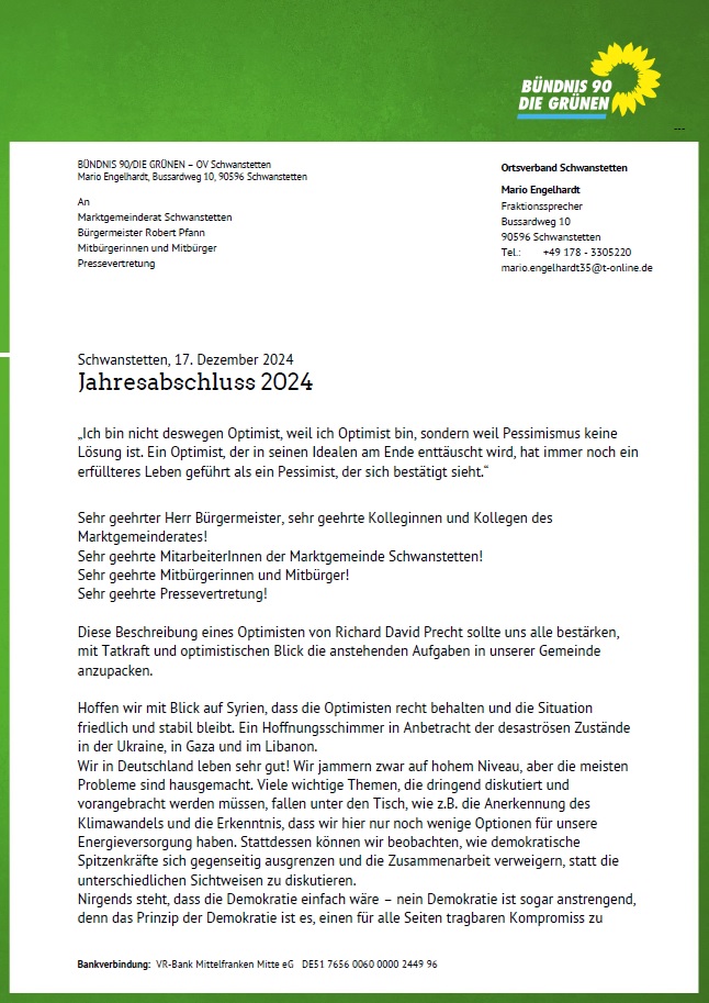 Der OV Bündnis 90 die Grünen in Schwanstetten lud zu einem Diskussionsabend zum Thema Demokratie in unserer Gesellschaft ein und rund 30 Demokraten kamen und tauschten sich rege miteinander aus.