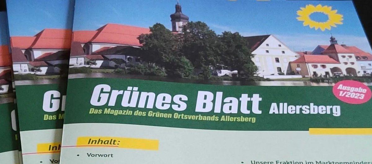 Unser "Grünes Blatt" erscheint in unregelmäßigen Abständen etwa 2 bis 3 Mal pro Jahr. Darin informieren wir über Neuigkeiten in der Partei sowie über unsere Sicht auf aktuelle Themen in der Gemeinde. Nach einer kleinen Pause in 2024 soll das Blatt ab 2025 wieder regelmäßig erscheinen.