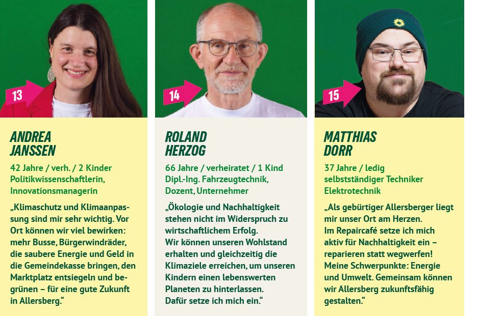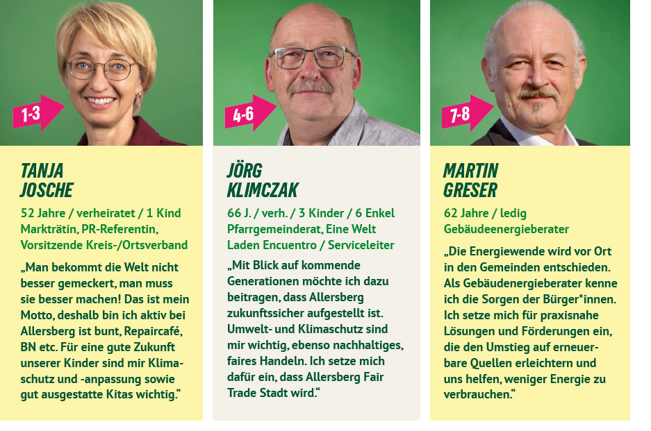 Für welche Themen setzen wir Grüne uns ein? Wer sind unsere Kandidierenden? Am Infostand könnt ihr uns kennenlernen. Ihr findet uns an den Samstagen vor der Wahl am Marktplatz oder vor der Norma.