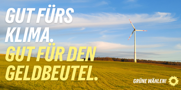 Sonne und Wind schicken uns ihre Energie kostenlos, und kein Diktator dieser Welt kann den Hahn zudrehen. Wir GRÜNE setzen uns dafür ein, diesen natürlichen Schatz zu nutzen. Denn Wind- und Sonnenenergie sind nicht nur sauber, sondern auch billiger als Gas und Öl. Wichtig ist uns dabei: Die Gewinne müssen in die Gemeindekasse fließen und bei allen Bürgerinnen und Bürgern ankommen.