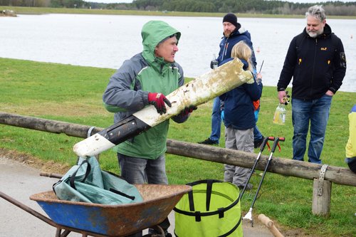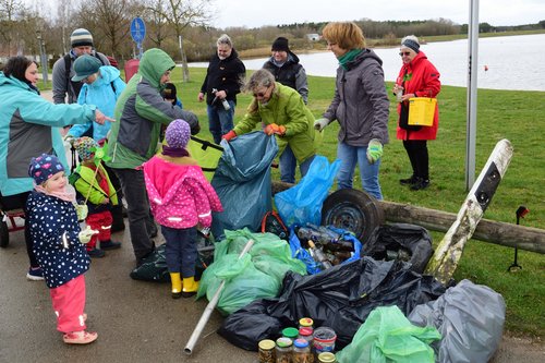 Jedes Frühjahr organisieren die Grünen aus Roth, Hilpoltstein und Allersberg gemeinsam einen „Rothsee Cleanup“ – eine Müllsammelaktion am Rothsee-Ufer. Waren sie 2022 dabei noch mit frühlingshaften Temperaturen verwöhnt worden, ging es bei der diesjährigen Aktion, die am 25. März stattfand, stürmischer und regnerischer zu. Doch davon ließen sich die Mitglieder der drei Ortsverbände nicht beeindrucken und sammelten mit rund 20 engagierten Bürgern aus dem Umkreis auf Wiesen und Wegen jede Menge Plastikmüll und sonstigen Unrat. Mehrere Müllsäcke füllten sie in anderthalb Stunden, vor allem mit leeren Plastik- und Glasflaschen, Bonbon- und Eispapier, Kronkorken, vollen Hundekot-Beuteln und unzähligen Zigarettenkippen. Auch einige besondere Fundstücke fischten die Müllsammler aus dem Gebüsch: unter anderem einen alten Reifen, Badelatschen, eine Taucherbrille und sogar einen Straßenleitpfosten.