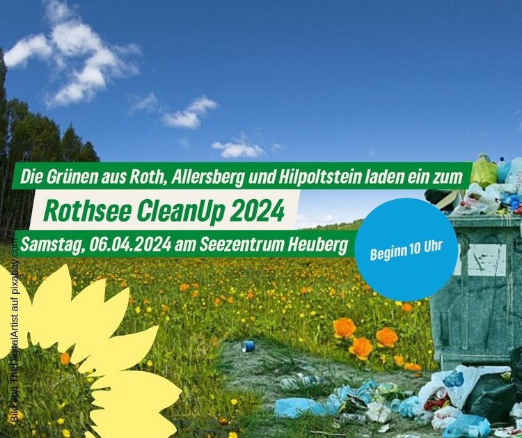 Am Samstag, dem 25. März 2023, veranstalten die Ortsverbände von BÜNDNIS 90 / DIE GRÜNEN aus Allersberg, Hilpoltstein und Roth ihre jährliche Müllsammelaktion am Rothsee. Wir laden interessierte und engagierte Bürger*innen ein, mit uns zusammen das Ufer von Plastikmüll und sonstigem Unrat zu befreien und so einen Beitrag zum Umweltschutz zu leisten. Treffpunkt ist um 10 Uhr am Seezentrum in Heuberg.