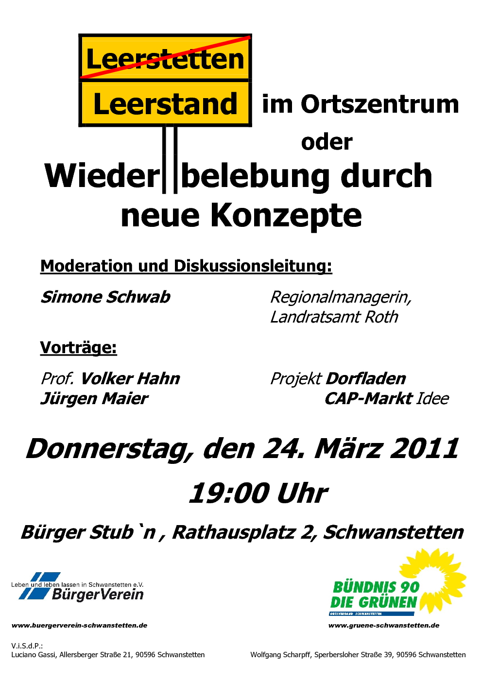 SCHWANSTETTEN — In Schwanstetten herrschte am Donnerstagabend, am Ende einer Informationsveranstaltung zum Thema „Nahversorgerkonzepte“, zu der Bürgerverein und Bündnis 90/Die Grünen eingeladen hatten, so etwas wie Aufbruchstimmung. Spontan meldeten sich rund zwei Dutzend Bürgerinnen und Bürger, die die Anregungen, die zuvor zwei Referenten gegeben hatten, weiterverfolgen wollen.